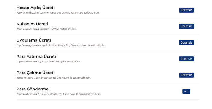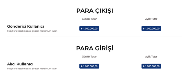 Popypara, finansal işlemleri hem bireysel hem de kurumsal kullanıcılar için uygun maliyetlerle sunar. İşte Popypara’nın ücret ve limitleri hakkında detaylı bilgiler: